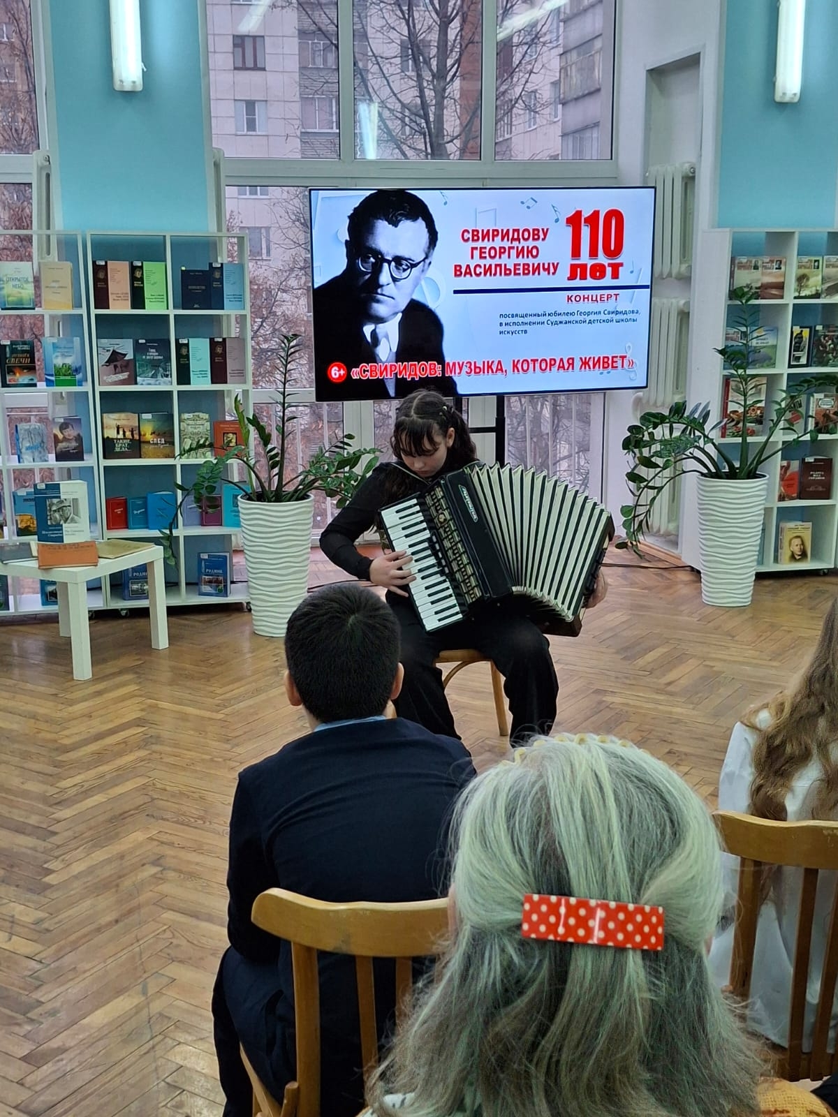 16 декабря 2025 года, к 110-летию со дня рождения русского композитора Георгия Свиридова, в Курской областной универсальной научной библиотеке им. Н. Н. Асеева состоялся концерт «Свиридов: Музыка, которая живет».