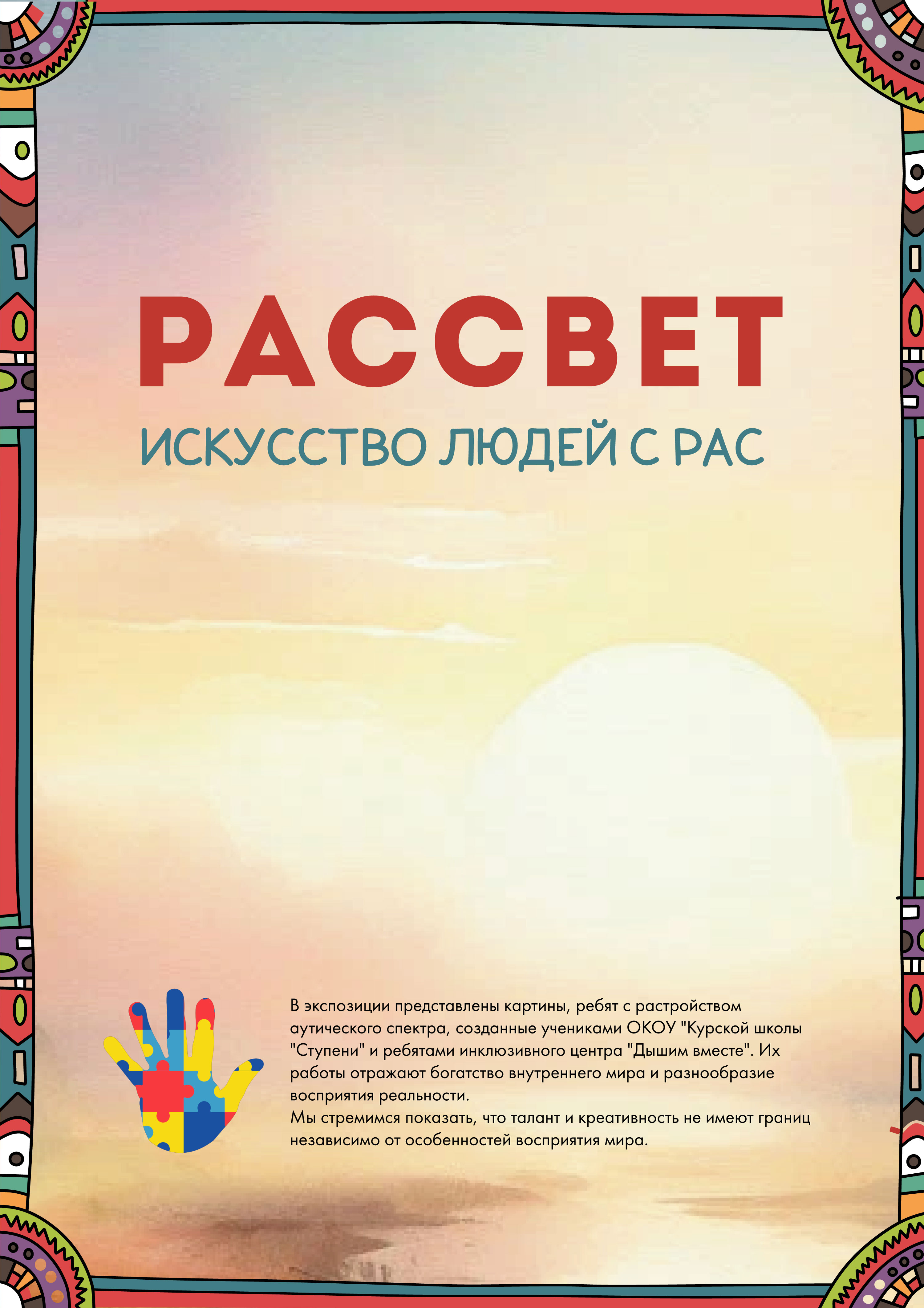 Выставка направлена на повышение осведомленности о возможностях людей с РАС и разрушение стереотипов, связанных с аутизмом. Мы стремимся показать, что талант и креативность не имеют границ, независимо от особенностей восприятия мира.