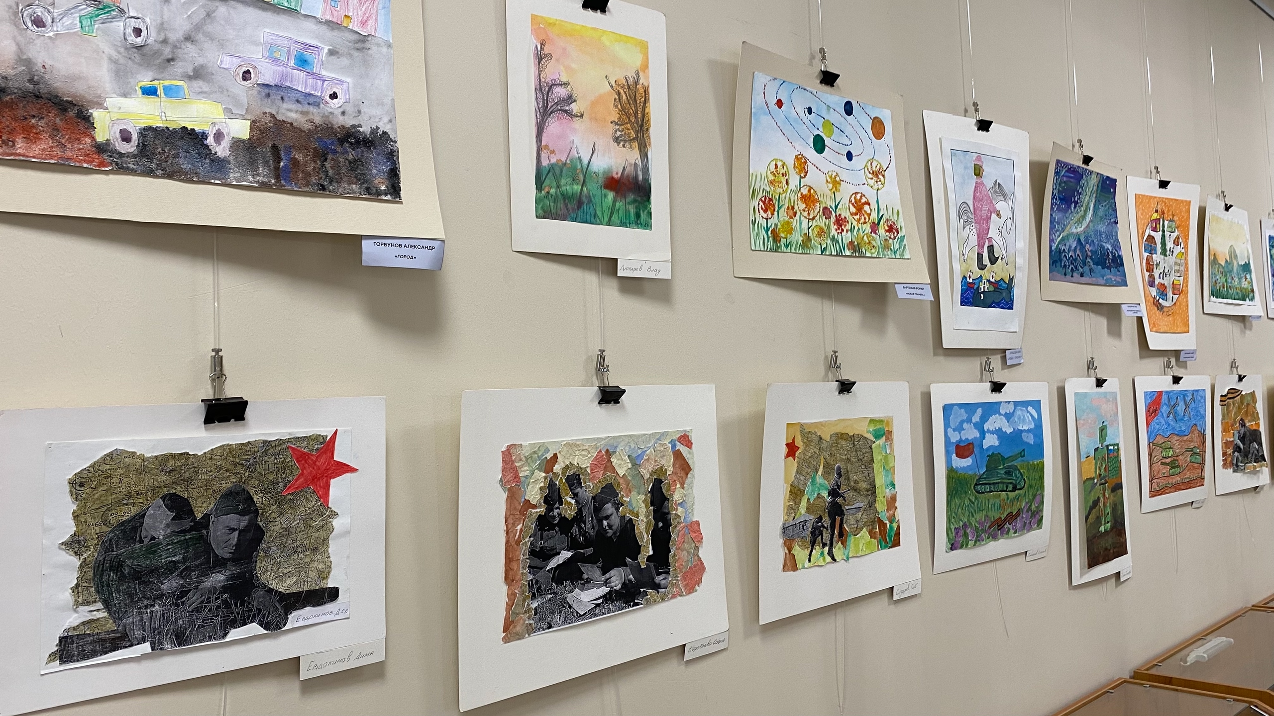 На экспозиции представлено более 25 художественных произведений юных художников.