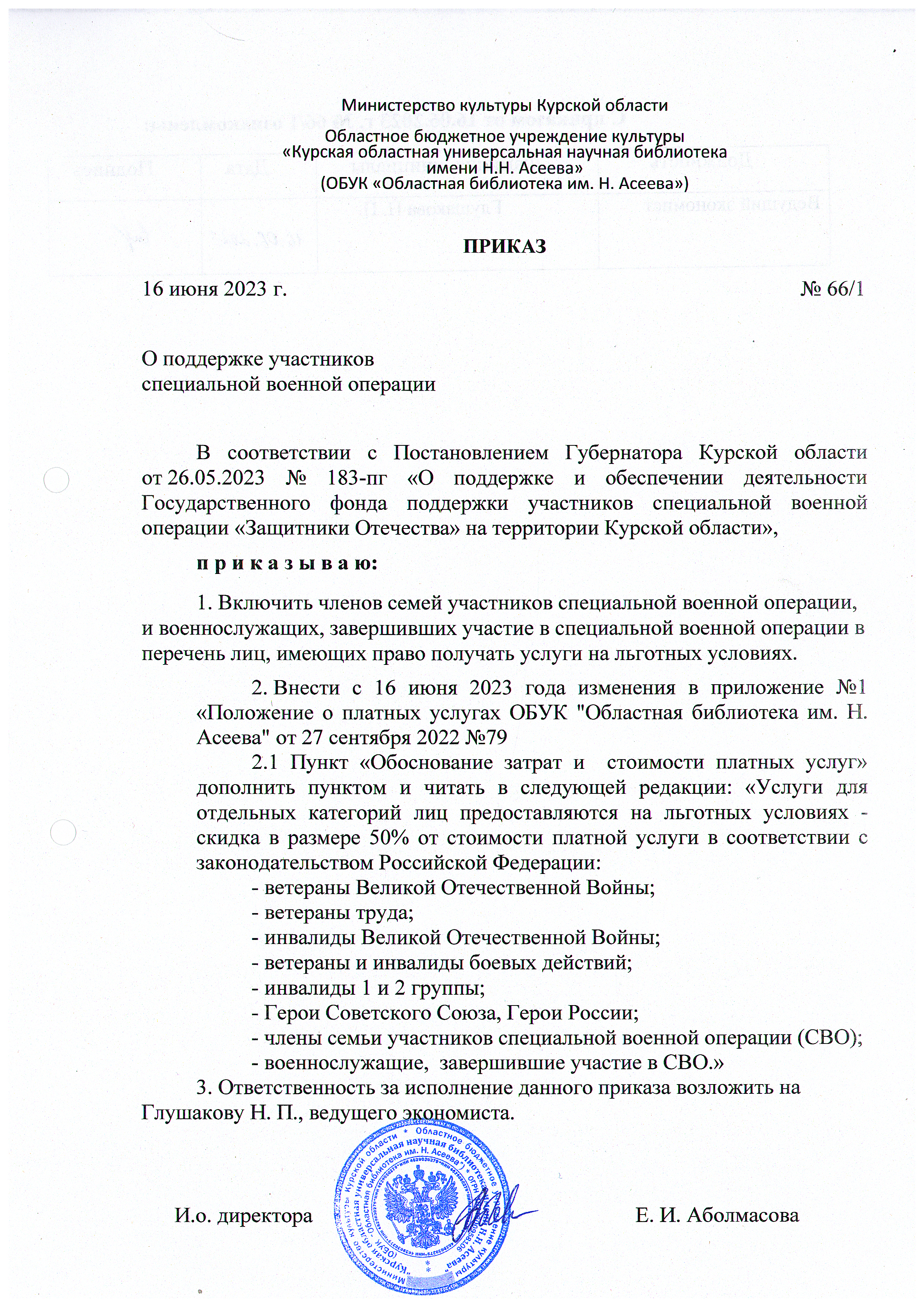 Положение о платных услугах, предоставляемых ОБУК «Областная библиотека им. Н. Н. Асеева»